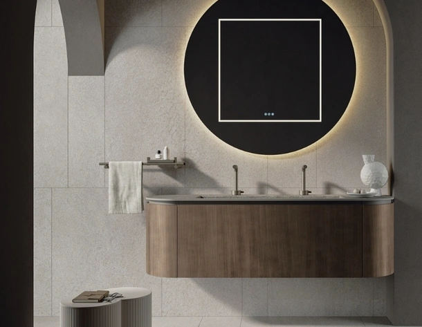 Mobili bagno sospesi D'Art 08 di Novello: scopri l'Arredo Bagno in legno moderno e arreda il bagno di casa.